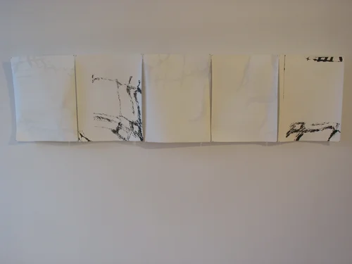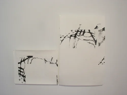 Motion examines the trajectory of a piece of art from the studio to the gallery or from the mind into reality or from the gallery into print form.